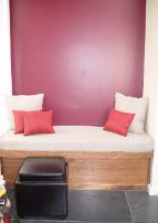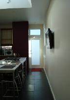 FLAT PANEL HP WALL MOUNTED TV, BUILT-IN BANQUETTE CUSHIONS & PILLOWS FOR THIS RECENTLY REMODELED KITCHEN. ARCHITECTURAL DESIGN BY